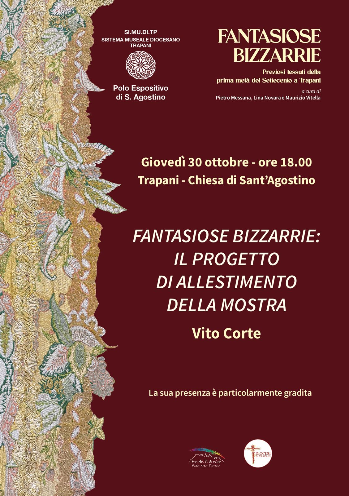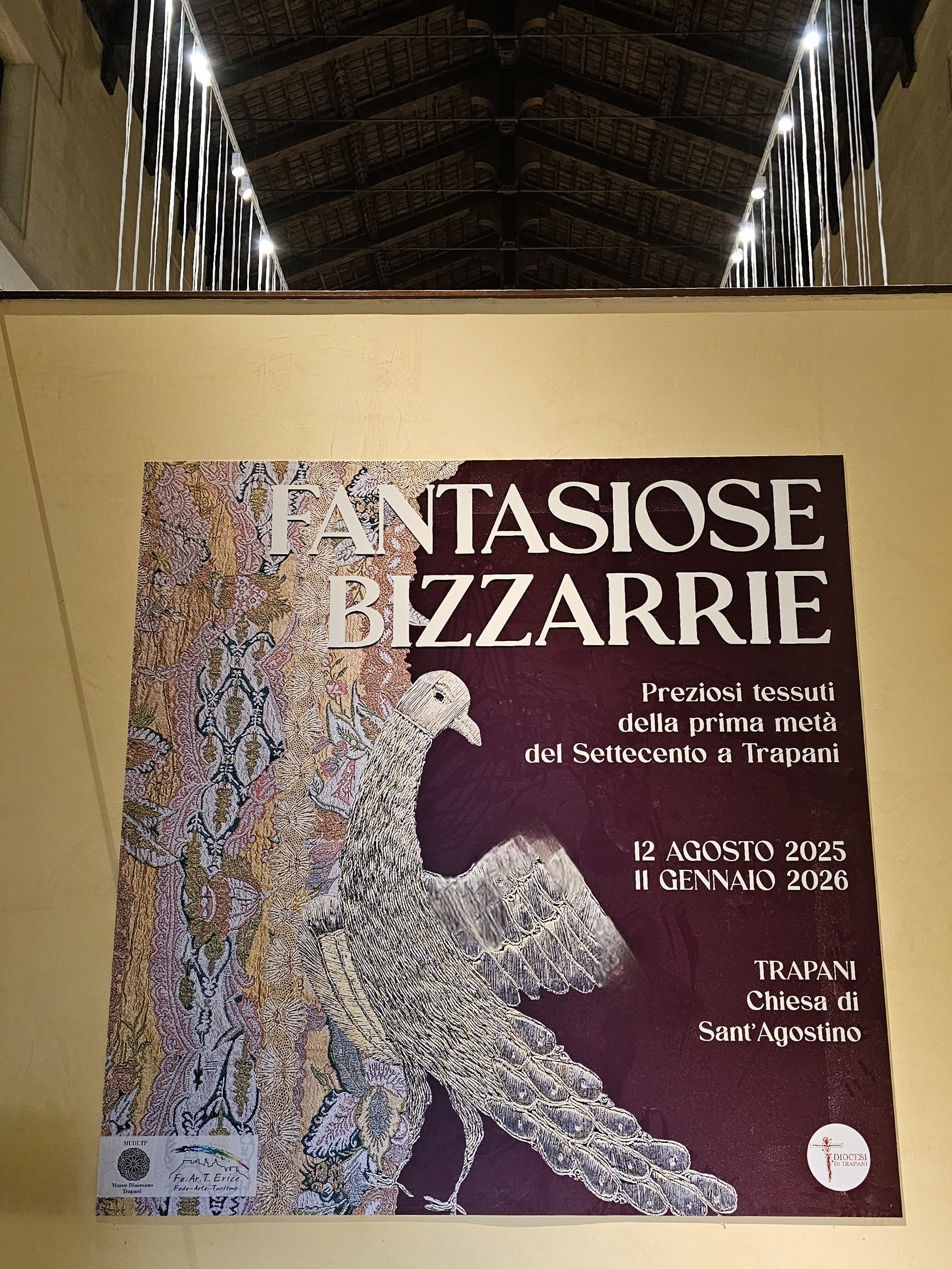 La mostra prende il nome da un fenomeno estetico che, nel Settecento, rivoluzionò il gusto europeo. La fantasiosa bizzarria nacque dal fascino per l’Oriente e dai commerci con le Indie, che portarono nel Vecchio Continente sete, porcellane e motivi decorativi esotici. Da Lione a Venezia, e fino a Messina, i telai produssero tessuti sontuosi, animati da colori sgargianti e disegni asimmetrici, in cui fiori, animali e architetture si fondevano in composizioni quasi astratte. In Sicilia, questi tessuti trovarono spazio anche nei paramenti sacri e nelle vesti monastiche, a testimonianza di un gusto raffinato e cosmopolita. Proprio le stoffe trapanesi oggi esposte rivelano la ricchezza di quella tradizione, che univa devozione e arte tessile di altissimo livello. La mostra e il ciclo di incontri, promossi dalla Diocesi di Trapani e dall’Ufficio per i Beni culturali, restituiscono così voce a un patrimonio a lungo custodito nel silenzio delle sacrestie, dove la seta continua a raccontare la storia di una terra capace, ancora una volta, di stupire per la sua bellezza.