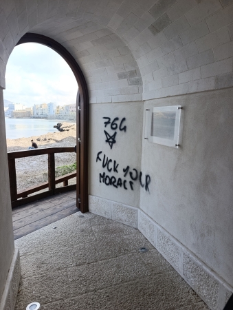 Atto vandalico sulla Porta sul Mare, il nuovo accesso al litorale sotto il Bastione Conca a Trapani. Sul muro appena restaurato è comparsa una scritta in parte incomprensibile, tracciata di notte: nessuna firma, solo vernice scura sulle pietre riportate alla luce con fondi pubblici. La zona è tra le più fotografate della città: vista mare, mura spagnole, scalinata di Sant’Anna recuperata, turisti ogni giorno. E proprio lì qualcuno ha deciso di lasciare il segno. Non un’opera, non un messaggio. Solo uno sfregio. Dove dovrebbe esserci rispetto, c’è la bomboletta spray. Dove dovrebbe esserci orgoglio, resta l’ennesima prova che a Trapani puoi investire milioni, rifare mura, basole e pietra antica, ma non puoi difenderle da chi, di notte, le rovina. Sulle Mura di Tramontana, nel nuovo varco sul mare, la scritta è apparsa poche settimane dopo l’apertura della struttura. Nessuna street art, nessuna denuncia sociale: solo vandalismo.