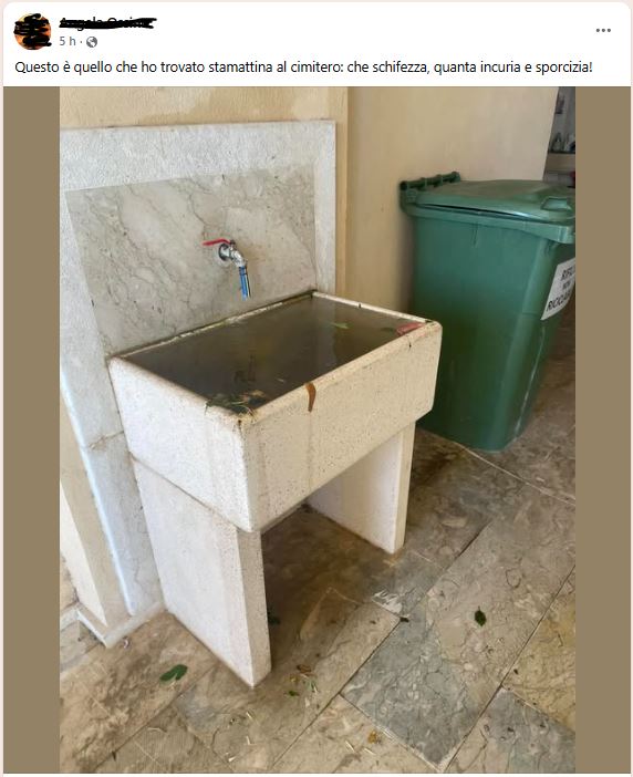Non è un episodio isolato. Anche al cimitero comunale, dopo la pulizia straordinaria per il 2 novembre e l’installazione di lavandini nuovi, in poche ore sono riapparsi lavabi sporchi, otturati e anneriti. C’è chi ammette che parte della responsabilità è dei cittadini, che usano male gli spazi pubblici e non li puliscono, e chi invece parla di totale mancanza di educazione e rispetto. Molti ricordano che il cimitero la mattina era in ordine e nel pomeriggio già degradato.