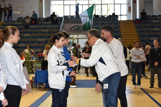 Alle due medaglie di bronzo si sono aggiunti altri due piazzamenti di grandissimo valore tra i primi otto, a dimostrazione di una profondità di squadra notevole. Gaspare De Maria (2015) si è distinto nel Fioretto Maschietti, conquistando un ottimo 5° posto. Il suo piazzamento è stato costruito fin dal girone, dove ha messo a segno due importanti vittorie contro atleti di Scherma Modica e Club Scherma Siracusa. Ma è nella Spada che si è vista una performance di pura adrenalina: Gioele Caito (2014) è stato protagonista di una prestazione straordinaria nella Spada Giovanissimi, chiusa con un meritato 5° posto. Il suo girone è stato un vero e proprio dominio, concluso con un percorso netto di cinque vittorie su cinque. Gioele si è imposto in maniera netta, battendo un tabellone composto interamente da atleti delle forti province di Catania e Ragusa. Da sottolineare anche l'impegno encomiabile di Lelio Brancato, che non si è risparmiato: prima del podio nel fioretto, ha affrontato un intenso weekend cimentandosi anche nella Spada Giovanissimi (14° posto), ottenendo importanti vittorie nel girone.