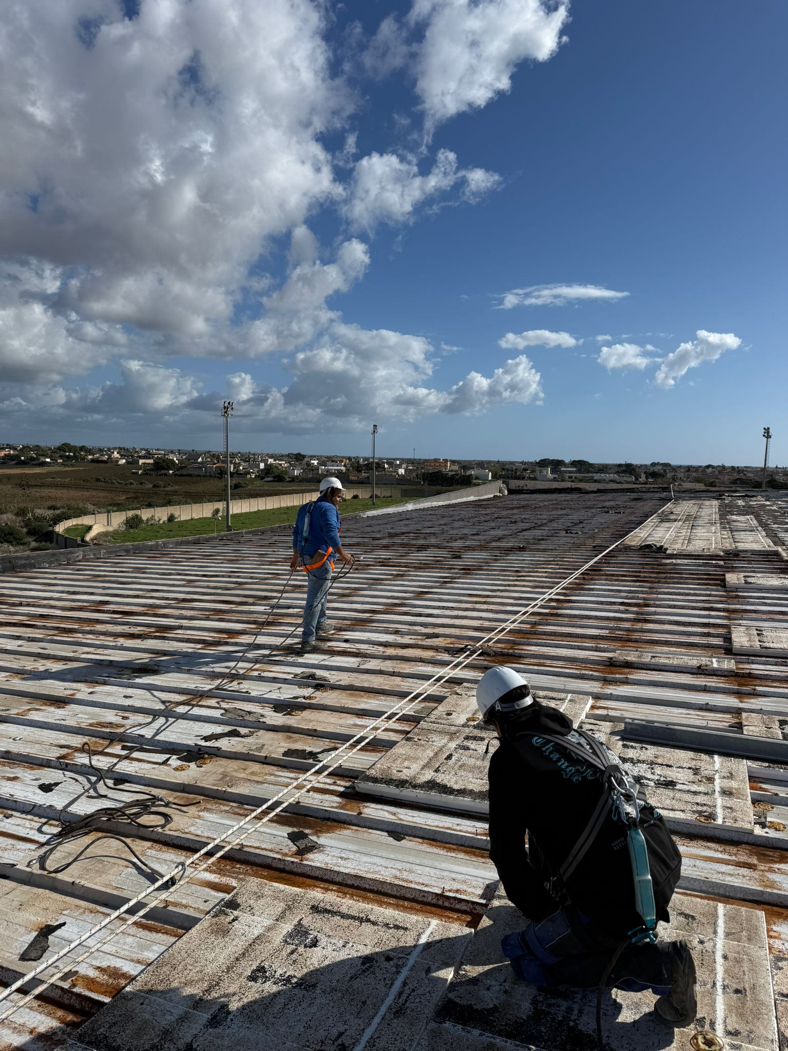 L’intervento in corso riguarda principalmente la coibentazione della copertura: i lavori prevedono la rimozione del vecchio materiale deteriorato, la posa di un nuovo strato isolante e l’applicazione di una protezione in poliurea, oltre alla sistemazione completa delle grondaie. Si tratta di un’opera attesa da anni, fondamentale per garantire la piena funzionalità e la sicurezza della struttura.