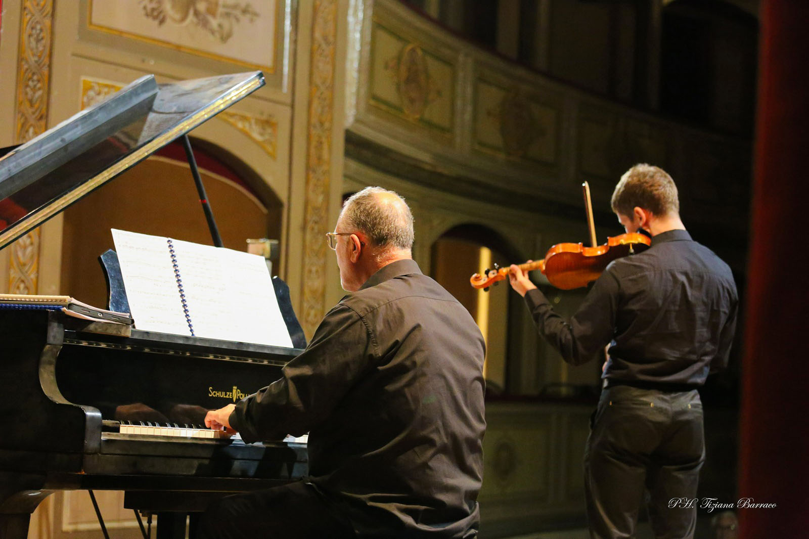 Il programma, denso di virtuosismo e passione, si è aperto con la Sonata in Si bemolle maggiore K 454 di W.A. Mozart, un capolavoro che ha subito messo in luce l’intesa profonda tra i due artisti: Amedeo Francesco Aurilio al pianoforte e Vincenzo Aurilio al violino. Il dialogo cameristico, equilibrato e partecipe, ha rivelato una sensibilità interpretativa capace di restituire tutta la grazia e la complessità emotiva della scrittura mozartiana.