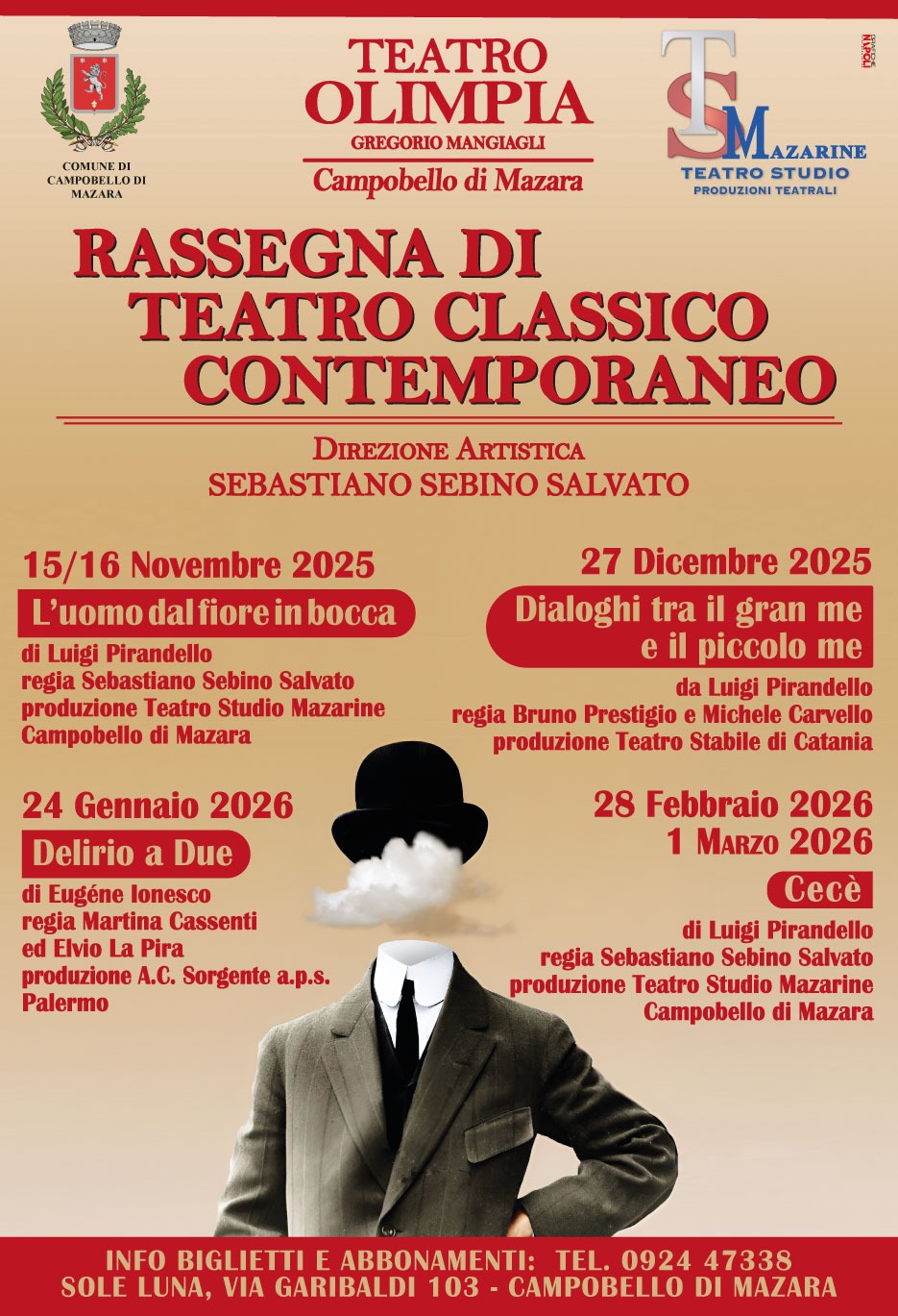 Il Teatro Studio Mazarine conferma la sua vocazione culturale con una nuova stagione di spettacoli al Teatro Olimpia di Campobello di Mazara, puntando ancora una volta su scelte artistiche di qualità e sulla valorizzazione del territorio.