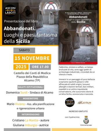 Al riguardo, sabato 15 novembre alle 17.00, con il patrocinio del Comune di Alcamo, sarà presentato al Castello dei Conti di Modica, il libro “Abbandonati. Luoghi e paesi fantasma della Sicilia” (Ed. Giacchè) a cura dell’associazione culturale Ascosi Lasciti e del collettivo Liotrum Urbex Sicilia; a moderare sarà l’assessore alla rigenerazione urbana Mario Viviano, e dopo i saluti del Sindaco Domenico Surdi interverranno gli autori Crsitiano La Mantia e Giuliana Imburgia. Sarà possibile, inoltre, visitare la mostra fotografica dedicata ai luoghi abbandonati della Sicilia, grazie al lavoro interessante a cura dei fotografi, giornalisti, architetti, storici ed esploratori urbani referenti territoriali del progetto. “L’iniziativa nasce - dichiara l’assessore Mario Viviano - grazie all’amore per i luoghi in rovina, creati, vissuti e poi dimenticati dall’uomo, i doni nascosti del passato, gli ASCOSI LASCITI, come racconteranno gli autori. Dobbiamo superare l’indifferenza e catturare l’occhio del passante - continua l’assessore – rimettere in moto la curiosità, il desiderio di conoscenza, per accorgersi di un patrimonio immobiliare nascosto, oltre all’importanza di raccontare aneddoti ed informare anche e soprattutto in un’ottica di rigenerazione urbana del patrimonio sia pubblico che privato”.