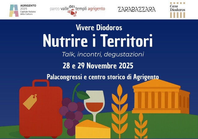 Adesso l’iniziativa - che rientra nei 44 progetti del dossier di candidatura di Agrigento Capitale Italiana della Cultura 2025, è organizzata dalla società Zarabbazzara per la Fondazione Agrigento 2025 in collaborazione con il Parco Archeologico e Paesaggistico della Valle dei Templi - sposta il suo focus sul turismo enogastronomico e su come questo abbia un effetto positivo per interi territori. Il primo appuntamento è venerdì 28 novembre alle 10 alla sala Zeus del Palacongressi di Agrigento con l’apertura ufficiale della due giorni che sarà affidata al convegno “L’esperienza Diodoros: esempio virtuoso di agricoltura sostenibile con declinazione enoturistica. L’agroalimentare di qualità certificato a sostegno del turismo”.