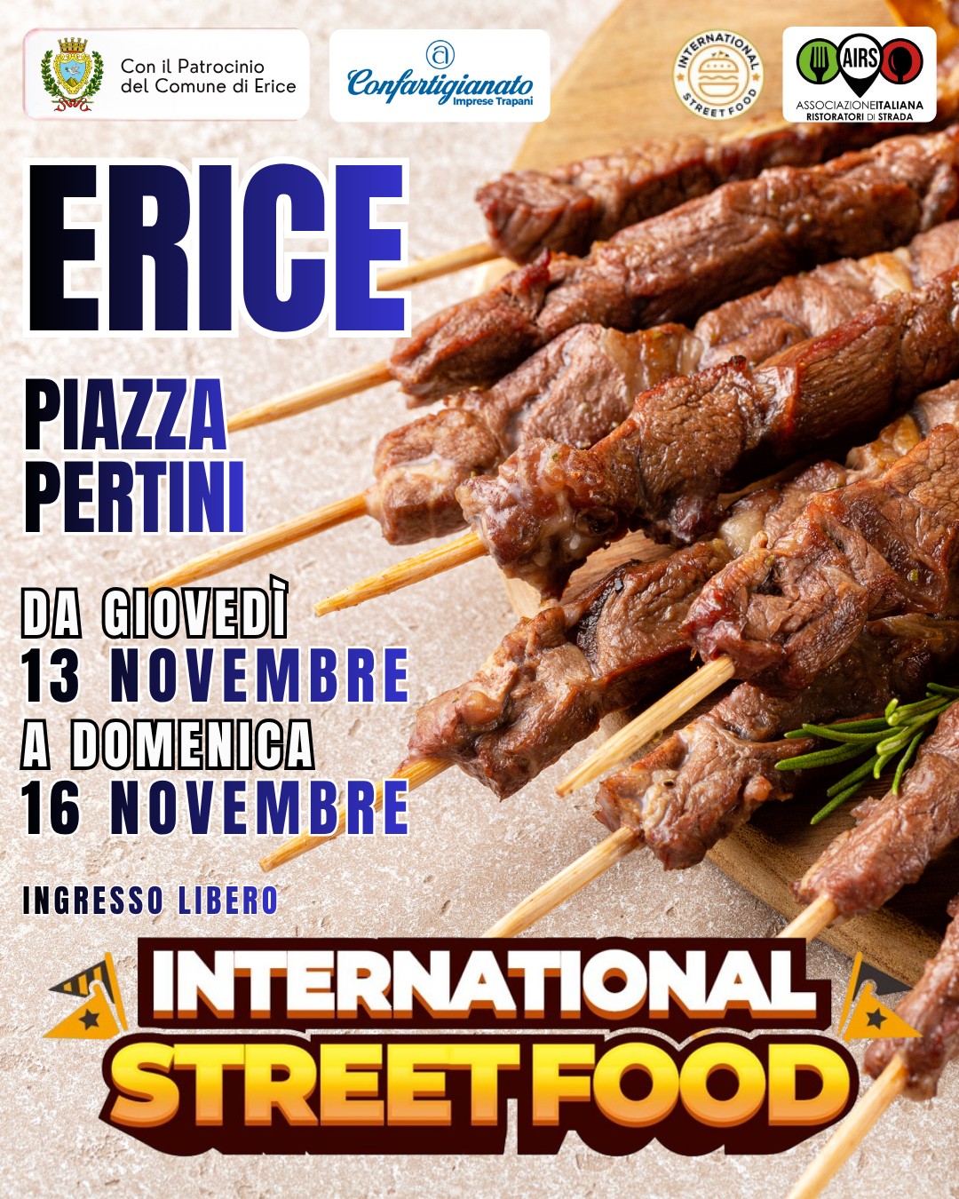 ERICE - Fino al 16 novembre 2025 Erice Casa Santa ospita l’International Street Food, grande festival dedicato alla cucina di strada da tutto il mondo. In Piazza Pertini decine di food truck proporranno specialità internazionali, birre artigianali e sapori dai cinque continenti. L’evento, ideato da Alfredo Orofino e organizzato con Confartigianato Trapani e il patrocinio del Comune di Erice, sarà aperto ogni giorno fino a mezzanotte. Ingresso gratuito.