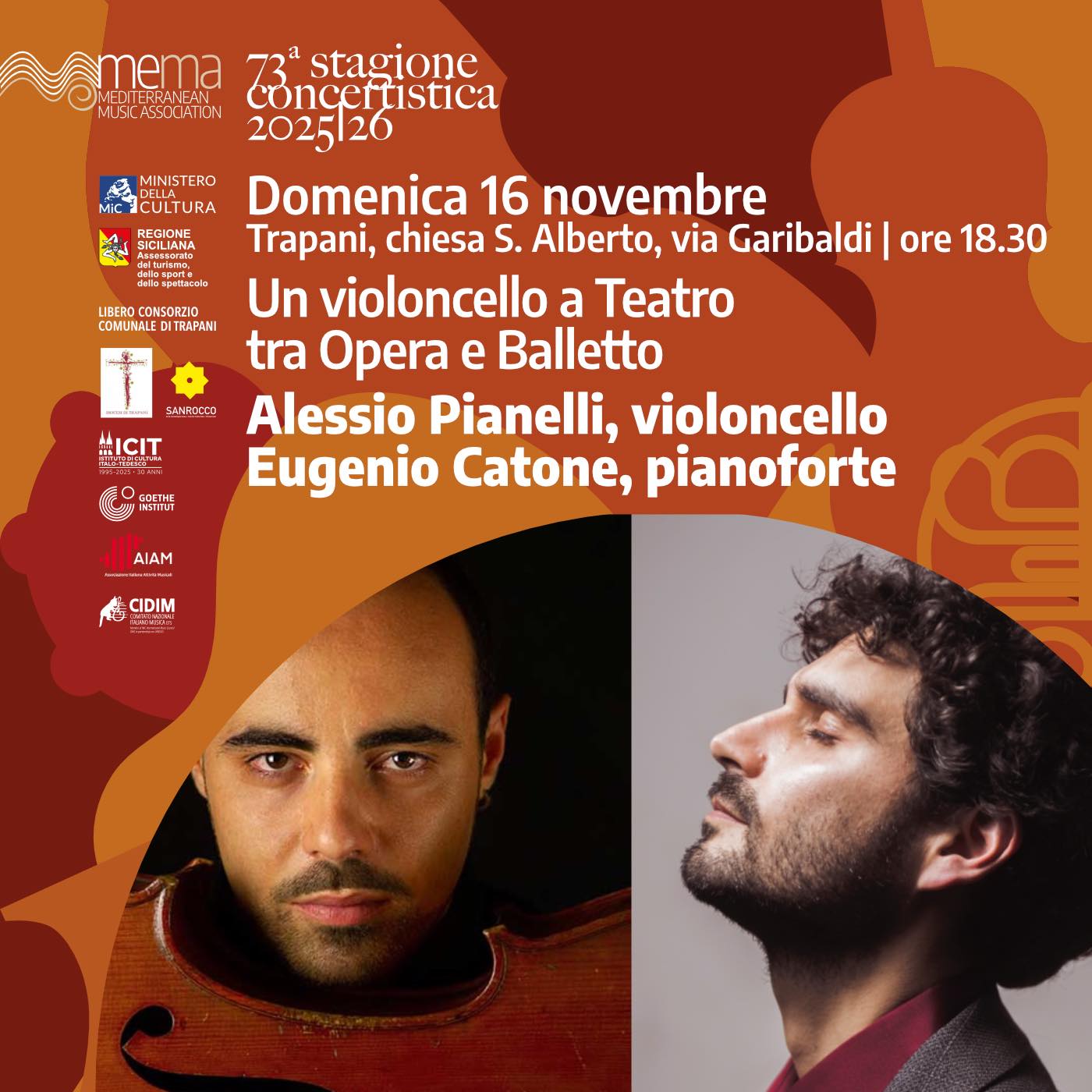 TRAPANI - La 73ª stagione concertistica MEMA propone domenica 16 novembre, alle 18.30, un appuntamento dedicato al dialogo tra opera e balletto. Nella chiesa di Sant’Alberto si esibiranno il violoncellista Alessio Pianelli e il pianista Eugenio Catone, protagonisti del concerto “Un violoncello tra opera e balletto”. L’ingresso è libero. TRAPANI - Prosegue il viaggio culturale di "Identità Perdute", la rassegna letteraria promossa dalla Fondazione Nova Civitas ETS a Trapani. Sabato 15 novembre alle 17.00, alla Chiesa di Sant'Alberto in via Garibaldi, ospite Ester Rizzo, giornalista e autrice tra le voci più autorevoli della ricerca storica legata alle vicende femminili, per presentare l'edizione aggiornata di "Camicette bianche. Oltre l'8 marzo", primo studio italiano dedicato al tragico incendio della Triangle Waist di New York, il 25 marzo 1911. Ingresso gratuito.