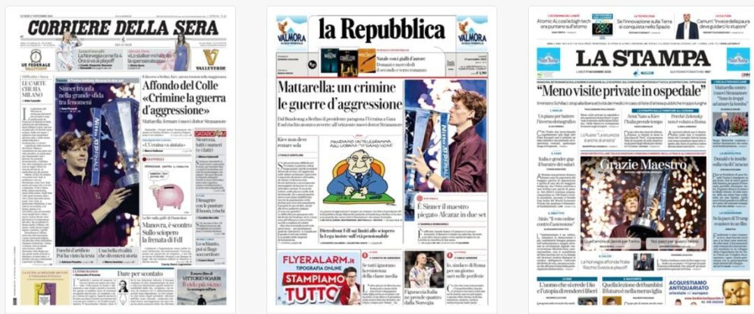 17 Novembre: vince Sinner, valzer di Trump sui dazi, i gadget di Meloni