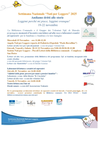 Marsala aderisce alla Settimana Nazionale *Nati per Leggere* 2025 con un programma fitto di iniziative promosse dall’Amministrazione Grillo, in collaborazione con la Biblioteca comunale Struppa e il Gruppo dei Volontari NpL.