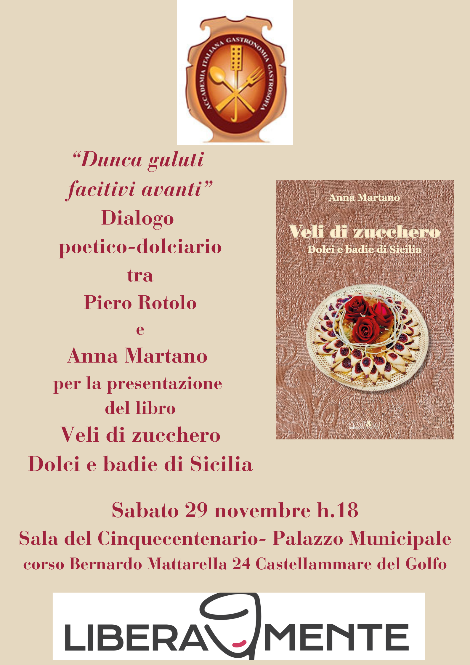 CASTELLAMMARE DEL GOLFO - Sabato 29 novembre alle 18, nella Sala del Cinquecentenario di Castellammare del Golfo, sarà presentato “Veli di zucchero. Dolci e badie di Sicilia” di Anna Martano, edito da Ali&no. Il volume raccoglie una ricerca approfondita sulla pasticceria conventuale siciliana, tra antiche ricette e reinterpretazioni moderne. Martano, gastronoma e giornalista, racconta la Sicilia attraverso i suoi dolci, intrecciando storia, cultura e memoria. L’incontro è aperto al pubblico.