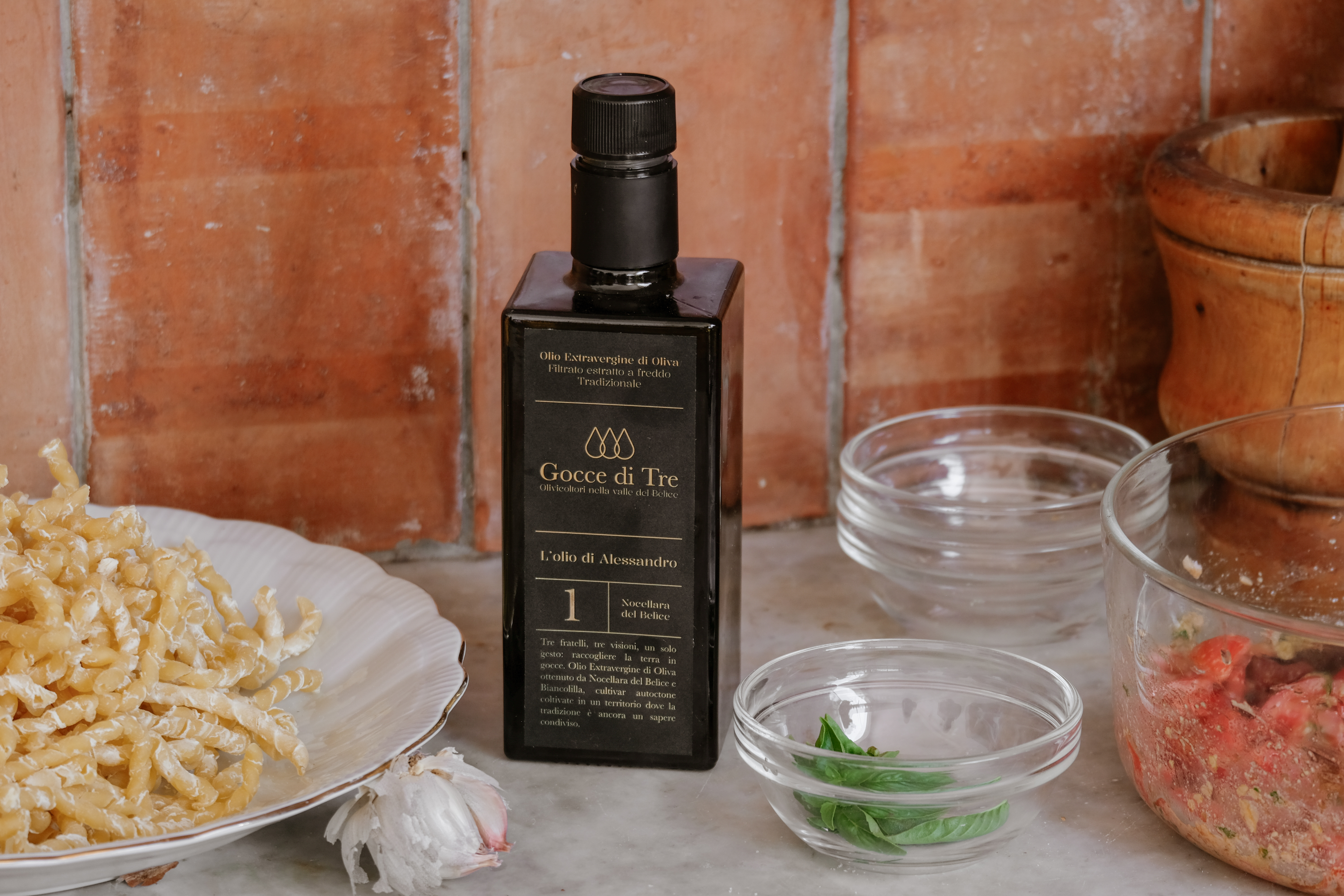 La produzione di Gocce di Tre si inserisce in una zona con una lunga storia olivicola, documentata sin dall’epoca della Magna Grecia. Ogni bottiglia racconta il legame dei fratelli Costa con la Valle del Belìce e il loro impegno nel proporre un extravergine che rappresenti, in modo semplice e diretto, la loro terra.
