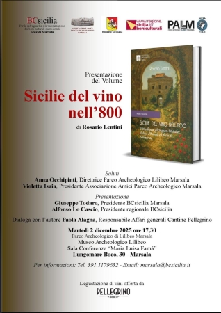Martedì 2 dicembre 2025, alle 17.30, nella Sala Conferenze “Maria Luisa Famá” del Museo Archeologico di Lilibeo (lungomare Boeo 30), sarà presentato il volume di Rosario Lentini, “Sicilie del vino nell’800. I Woodhouse, gli Ingham-Whitaker, il duca d’Aumale e i duchi di Salaparuta”.