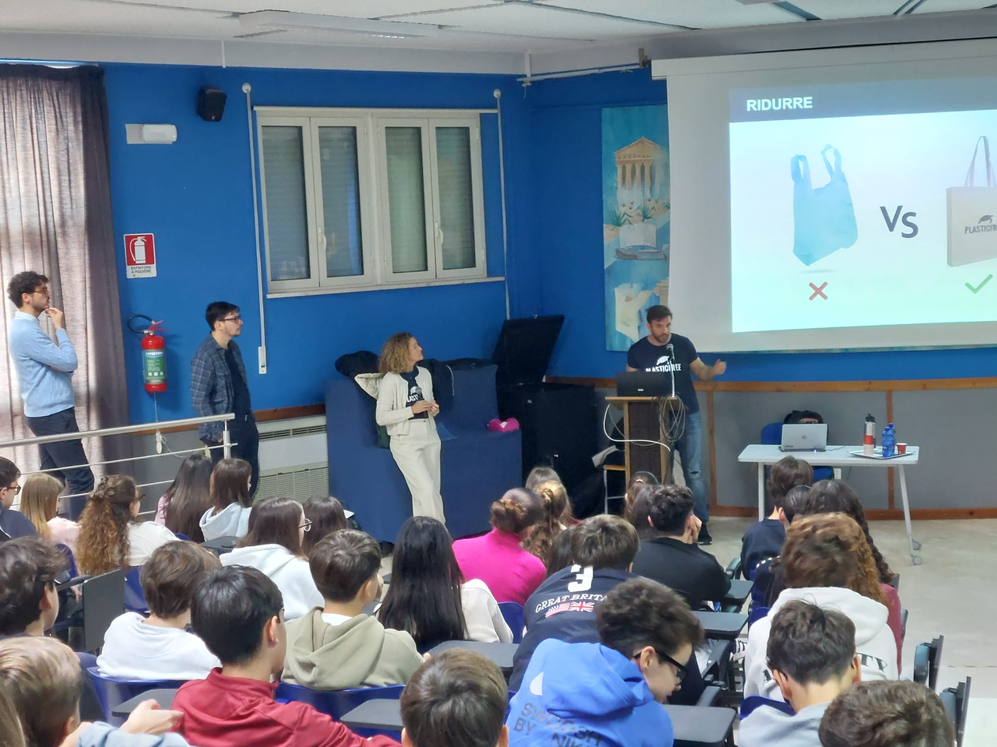 Attenta e partecipe la risposta degli studenti. A guidare l’incontro, con evidente coinvolgimento anche personale, due ex alunni del Ruggieri: l’ingegnere Giulio Crimi, responsabile provinciale Plastic Free, e il dottor Marco Catalano, Sustainability Project Manager di Sarco. Un modo per mostrare ai ragazzi che la tutela dell’ambiente passa anche dalle competenze costruite, un giorno dopo l’altro, proprio sui banchi della loro scuola.