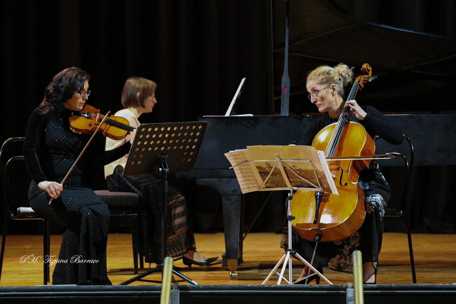 L’atmosfera intima del Teatro Eliodoro Sollima ha fatto da cornice perfetta al concerto dell’Aura Trio. Le attese del pubblico sono state ampiamente superate da un’esecuzione equilibrata tecnicamente e profonda emotivamente, confermando la statura artistica di un ensemble ormai rodato. Il sodalizio, formato da Simona Foglietta al violino, Maria Antonietta Gramegna al violoncello e Anna Rosaria Valanzuolo al pianoforte, ha incantato una platea attenta e partecipe, riscuotendo ampi e meritati consensi al termine di ogni brano. L’evento, inserito nella stagione promossa dall’Accademia Beethoven con il sostegno del Ministero della Cultura, dell’Assessorato allo Sport e Spettacolo della Regione Sicilia e del Comune di Marsala, ha dimostrato ancora una volta l’impegno costante dell’istituzione nel portare proposte di alto livello nel territorio, arricchendone il panorama culturale.