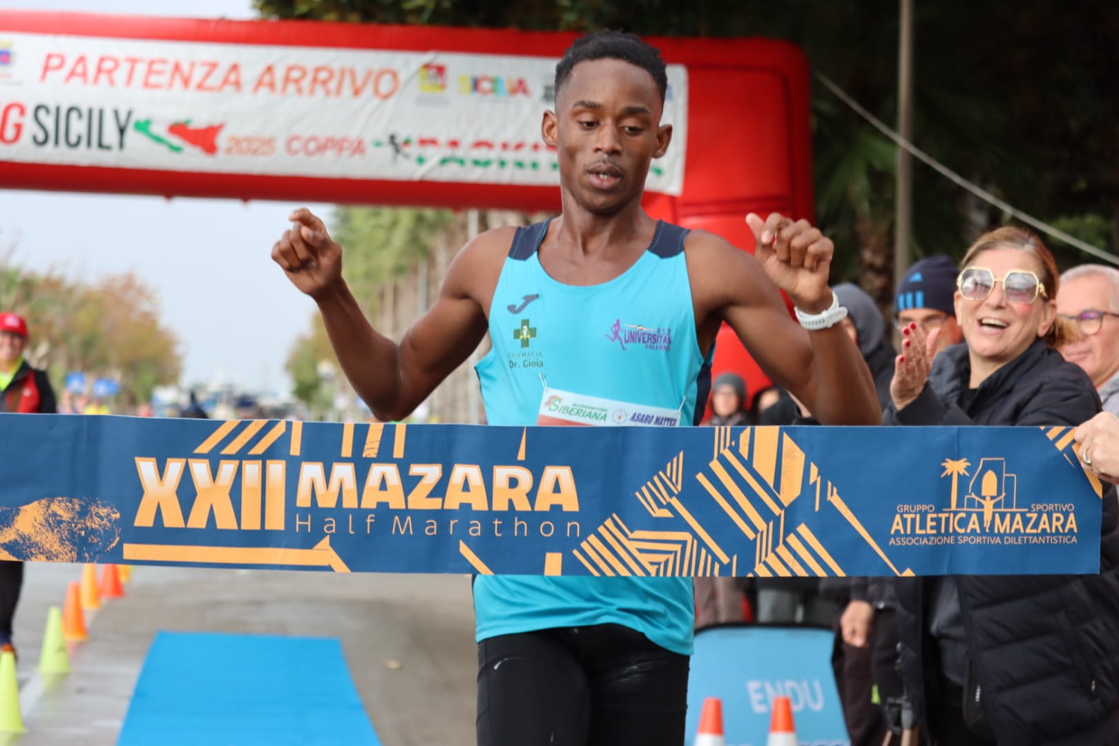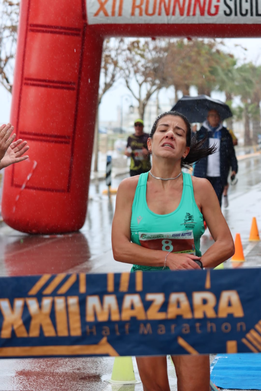 Un tracciato dal fascino unico ha fatto da scenario sotto la pioggia, a tratti battente, alla XXII Half Marathon di Mazara del Vallo, che ha richiamato oltre 600 atleti al via tra la mezza maratona e la 7 km. L’evento, organizzato dal Gruppo Sportivo Atletica Mazara guidato da Salvatore Piccione, con il patrocinio ed il contributo del Comune, ha chiuso la stagione 2025 del Running Sicily – Trofeo Packitalia, confermandosi una delle gare più attese del calendario regionale. A imporsi, come da pronostico, sui 21,0975 Km. è stato il maliano dell’Universitas Palermo Soumaila Diakite che, dopo il personale di 1h06’00 fatto segnare a Cremona e il recente successo nella mezza, alla Maratona di Palermo, ha dominato anche a Mazara, vincendo in 1h07:23 (alla media di 3'11" min/km). Alle sue spalle Fabio Cammarata (Sicilia Running Team) in 1h13:43 e Corrado Mortillaro (Podistica Messina) in 1h15:10. Tra le donne brillante ed ennesima vittoria di una stagione da incorniciare per la netina Maria Virginia Salemi (Podistica Messina), che ha chiuso in 1h24:49 (primato personale) precedendo Luana Russo (Sciacca Running, 1h26:31) e Nadiya Sukharyna (ASD Torrebianca, 1h29:42). La gara, inserita nel calendario nazionale FIDAL Bronze e valida pure quale prova conclusiva del circuito “Mari e Monti” (vinto tra le donne da Simona Sorvillo della Trinacria Palermo e da Antonio Muratore dell’Universitas Palermo tra gli uomini), ha anche laureato i nuovi Campioni Regionali Master di Maratonina.