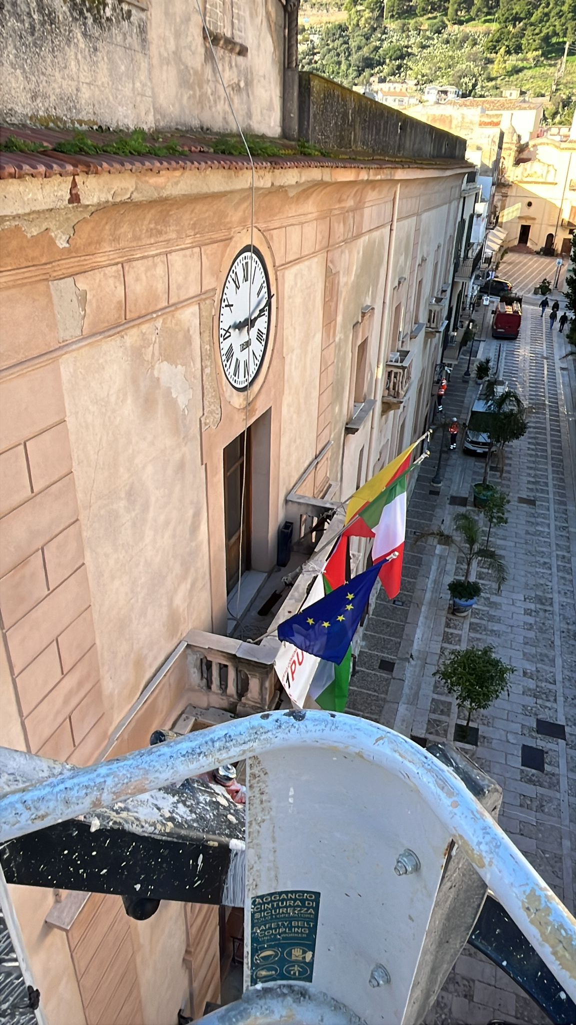 «Abbiamo previsto il restauro e la rimessa in funzione delle campane e dell’orologio storico che si erge sulla parte alta della facciata del palazzo municipale, con l’obiettivo di valorizzare il nostro patrimonio architettonico – affermano il sindaco Giuseppe Fausto e l’assessore alla Cultura Giovanni D’Aguanno –. È un piacere vedere l’orologio nuovamente funzionante e sentire di nuovo il rintocco delle campane, perché in un luogo che ha attraversato secoli di storia, arte e cultura si tratta di un segno di continuità e identità. Con il ripristino dell’orologio e il restauro delle campane torna a vivere un tassello prezioso della memoria cittadina. Un sentito ringraziamento va a Danilo Gianformaggio, trapanese e specializzato nel recupero di orologi monumentali, per l’impeccabile intervento effettuato».
