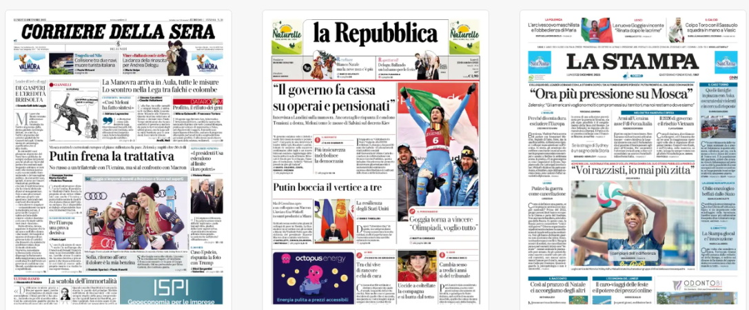 E' il 22 Dicembre 2025. Ecco i principali fatti in Italia e nel mondo ed i titoli dei quotidiani.