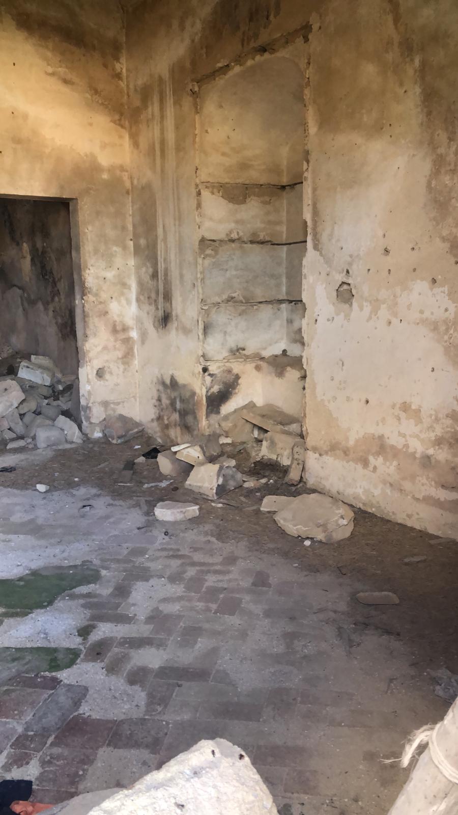 Nonostante il crollo parziale dell’edificio – parte di un antico complesso fortificato e conventuale – resistono ancora elementi preziosi come volte, archi e una cupola con tracce di affreschi.