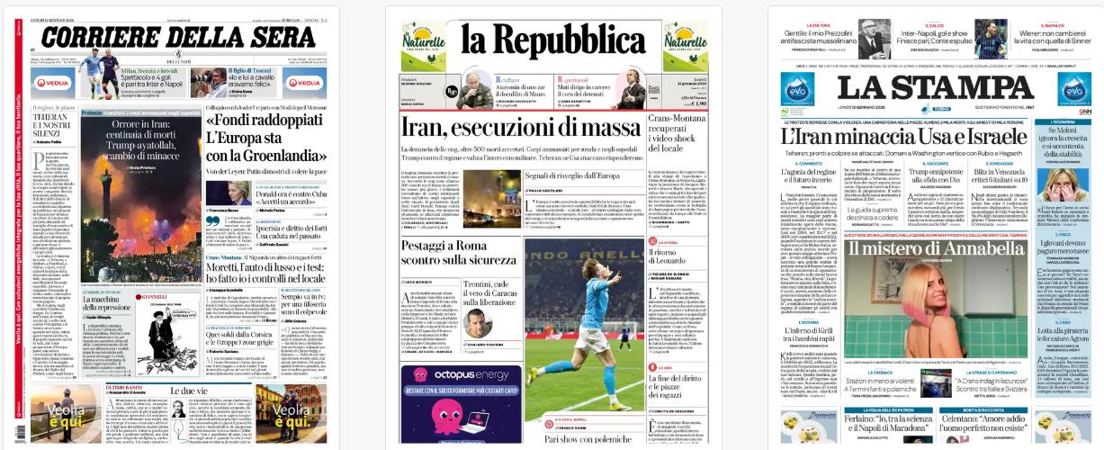 E' il 12 Gennaio 2026. Ecco i principali fatti in Italia e nel mondo ed i titoli dei quotidiani.