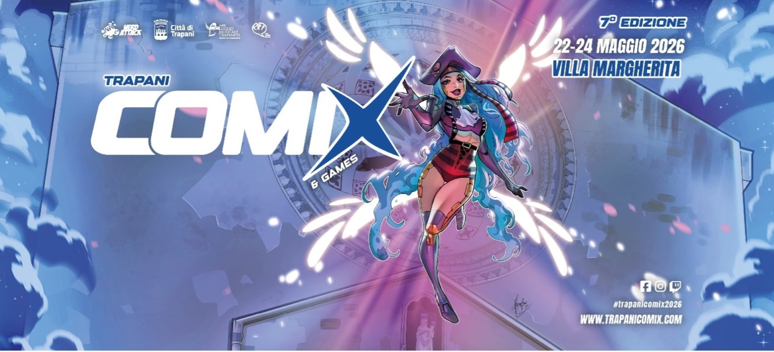 Trapani si prepara a tornare capitale della cultura pop. Dal 22 al 24 maggio 2026 la Villa Margherita ospiterà la settima edizione del Trapani Comix & Games, che apre ufficialmente il percorso con la presentazione del nuovo manifesto.