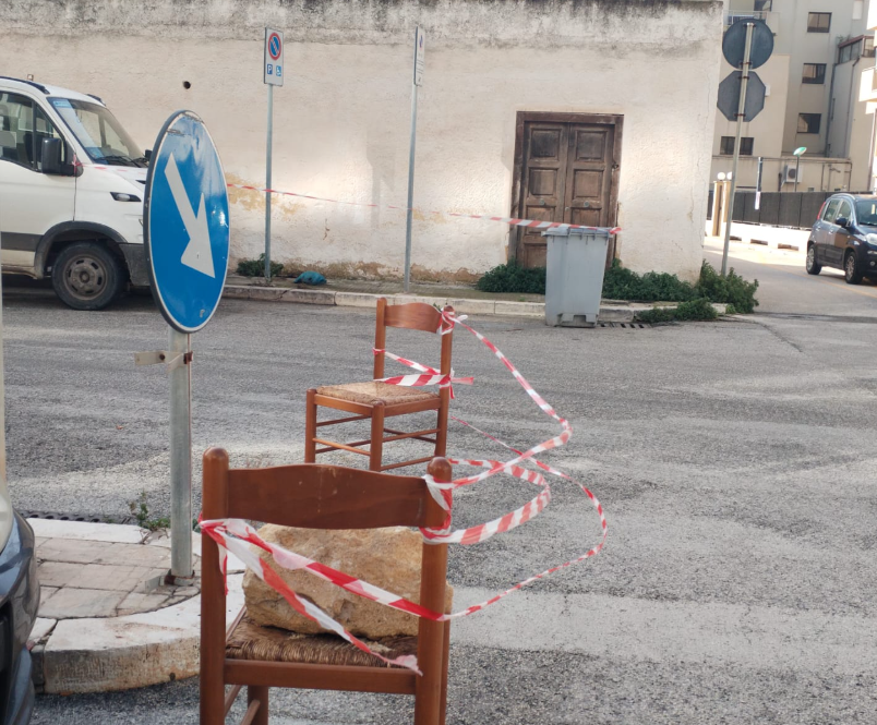 Due sedie piazzate in strada. Su una, appoggiato sopra, un blocco di tufo; entrambe legate con il classico nastro bianco e rosso da segnaletica stradale. Il messaggio è chiaro, o almeno dovrebbe esserlo: divieto di sosta momentaneo,...