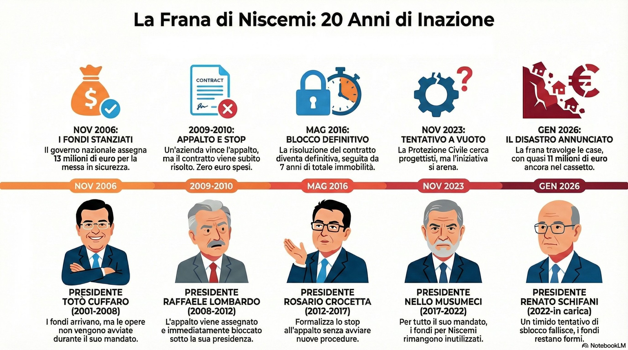 La Sicilia è alle prese con una delle fasi più difficili degli ultimi anni sul fronte del dissesto idrogeologico e degli eventi climatici estremi. Il ciclone Harry ha colpito duramente coste, infrastrutture e attività economiche, mentre a Niscemi una frana di proporzioni eccezionali continua a minacciare il centro abitato, costringendo centinaia di famiglie ad abbandonare le proprie case. Dal Trapanese al Nisseno, passando per la Sicilia orientale, l’Isola mostra tutte le sue fragilità strutturali: litorali erosi, strade invase da acqua e detriti, reti di collegamento interrotte e comunità che chiedono risposte immediate. In questo scenario di emergenza diffusa, tra interventi della Protezione civile, ristori economici e un acceso confronto politico, si apre una riflessione più ampia sulla prevenzione, sulla capacità di spesa e sulla necessità di ripensare lo sviluppo del territorio alla luce dei cambiamenti climatici.