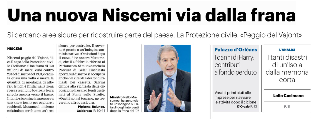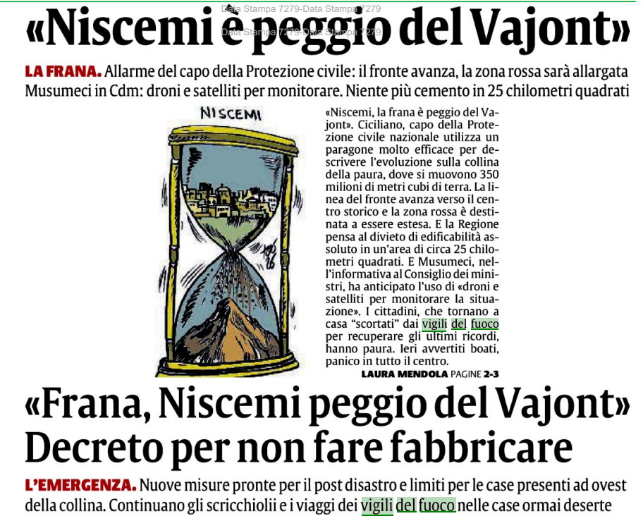 A lanciare l’allarme è stato il capo del Dipartimento nazionale della Protezione Civile, Fabio Ciciliano, che ha definito il fenomeno «tecnicamente peggiore del Vajont». Il movimento franoso in atto coinvolge infatti circa 350 milioni di metri cubi di terreno, a fronte dei 263 milioni di metri cubi del disastro del 1963: «Stiamo parlando – ha spiegato – di una massa quasi una volta e mezza superiore a quella del Vajont».