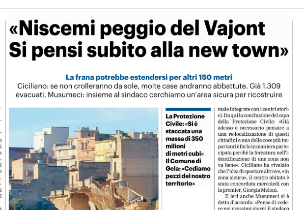Se nel Trapanese il maltempo ha mostrato ancora una volta la fragilità delle coste, a Niscemi l’emergenza assume contorni ancora più drammatici. La frana che interessa il centro abitato è ancora attiva e continua ad avanzare verso la città, imponendo evacuazioni, demolizioni e la necessità di ripensare completamente l’assetto urbano.