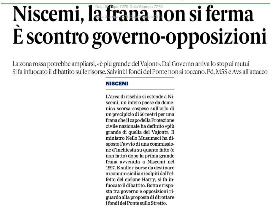 L’emergenza in corso non può essere archiviata come l’ennesima calamità imprevedibile. Il ciclone Harry e la frana di Niscemi raccontano una Sicilia esposta, vulnerabile, dove eventi estremi sempre più frequenti incontrano territori fragili e infrastrutture insufficienti. I primi ristori, le evacuazioni e le misure di messa in sicurezza rappresentano risposte necessarie, ma non sufficienti. La vera sfida inizia ora: trasformare l’emergenza in occasione di pianificazione, investire seriamente sulla prevenzione, sulla conoscenza del territorio e sulla capacità di realizzare gli interventi programmati. Perché senza una visione di lungo periodo, il rischio è che, passata l’onda dell’emozione e delle polemiche, restino solo macerie, ferite sociali e la certezza che il prossimo evento estremo troverà la Sicilia ancora una volta impreparata.