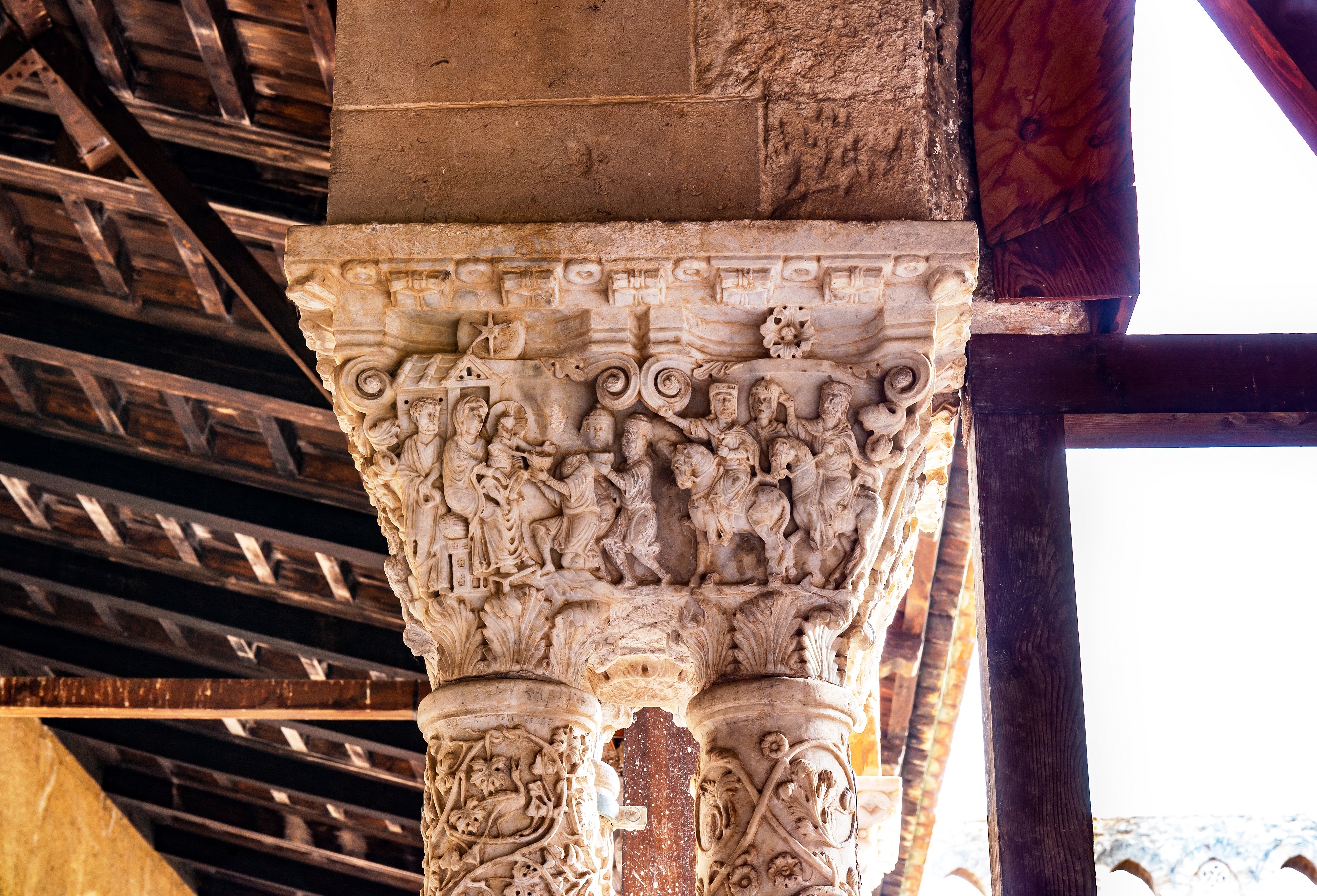 A Monreale, al Chiostro dei Benedettini, sono previste visite didattiche alle 11 e alle 12. Il percorso racconta ciò che resta dell’antico complesso monastico legato alla cattedrale di Guglielmo II: scene bibliche, bestiari medievali, il ciclo delle stagioni scolpito nei capitelli, il giardino simbolico e il chiostrino con la fontana.