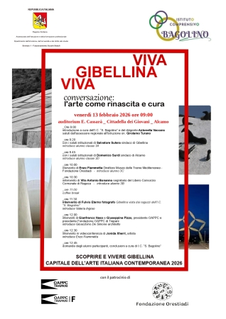 L’appuntamento è dedicato a Gibellina Capitale Italiana dell’Arte Contemporanea 2026 e punta a stimolare nelle giovani generazioni la consapevolezza del valore dell’arte contemporanea, intesa non solo come espressione estetica ma anche come strumento di resilienza e ricostruzione dell’identità collettiva.