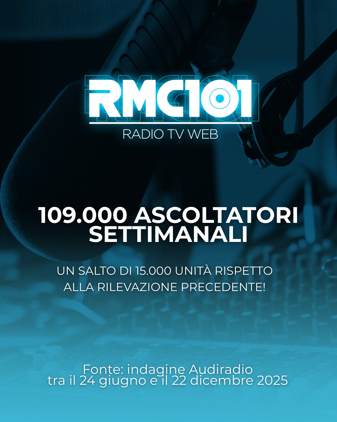 Fondata nel dicembre del 1976, RMC 101 ha attraversato mezzo secolo di trasformazioni tecnologiche e sociali, passando dall’FM analogica allo streaming digitale senza perdere il legame con il territorio. Un percorso che oggi trova conferma anche nei dati di ascolto, proprio nell’anno in cui l’emittente festeggia i suoi 50 anni di trasmissioni.