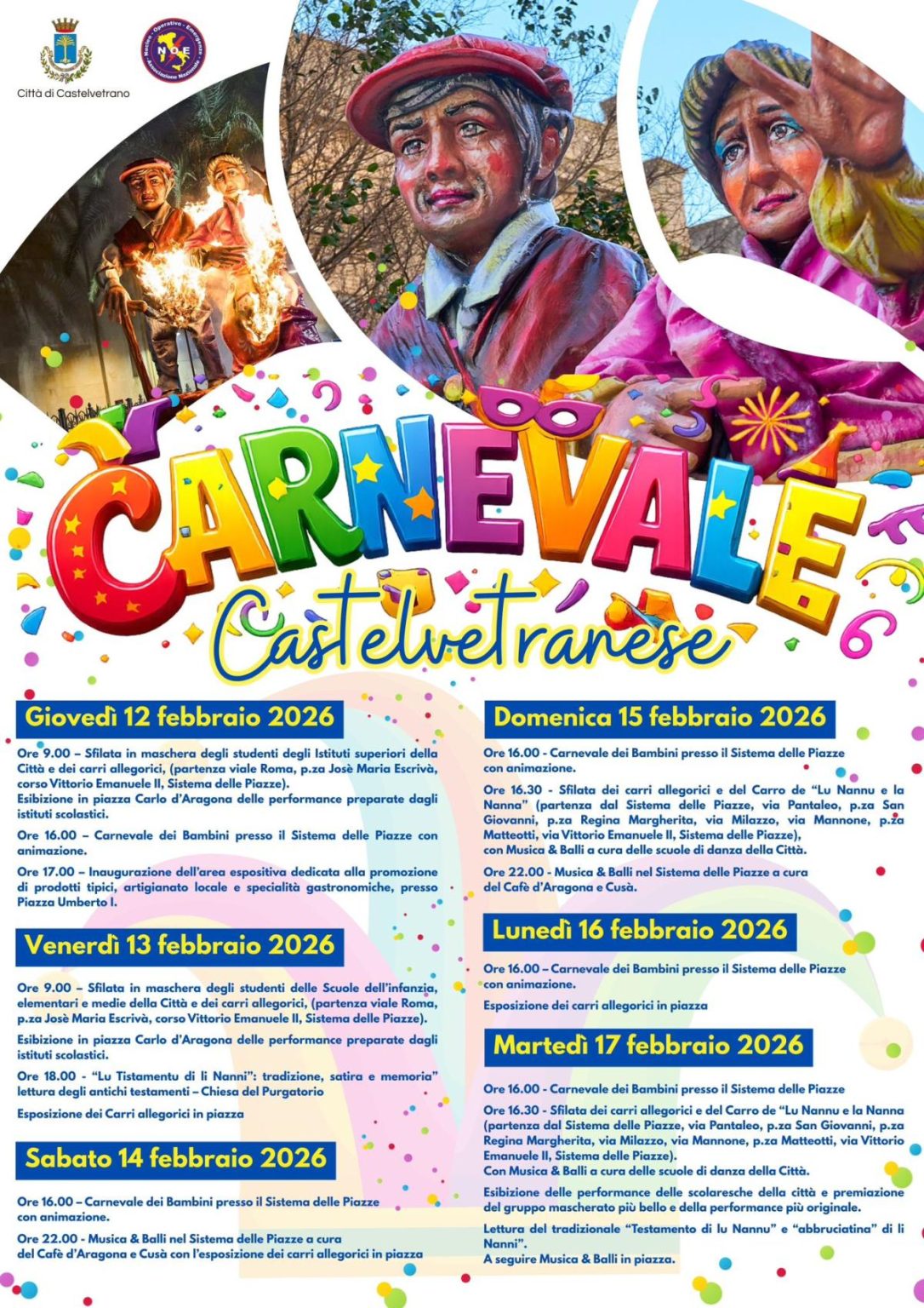 CARNEVALE CASTELVETRANESE 2026: ECCO IL PROGRAMMA UFFICIALE