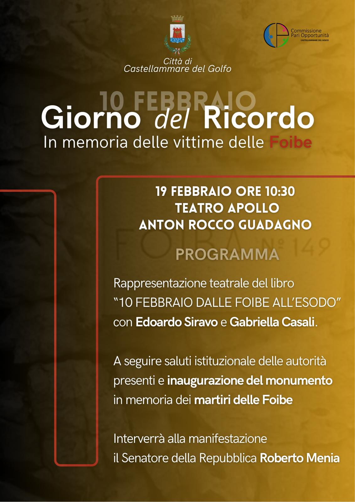 Anche Castellammare del Golfo celebra il Giorno del Ricordo con un evento in programma il 19 febbraio alle ore 10:30, al Teatro Apollo – Anton Rocco Guadagno di corso Mattarella.