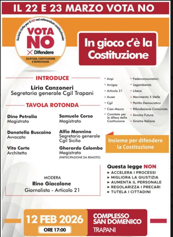 Riforma Nordio, oggi a Trapani il confronto sul No: “In gioco la Costituzione”