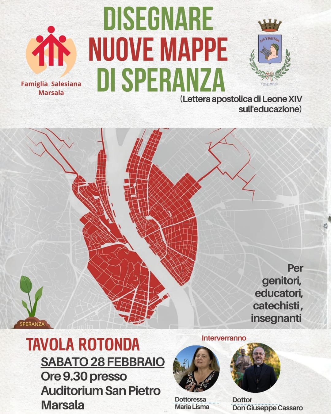 L’iniziativa è promossa dalla Famiglia Salesiana di Marsala con il patrocinio della Città di Marsala e prende spunto dalla Lettera Apostolica di Leone XIV sull’educazione. Un riferimento che orienta il senso dell’incontro: riflettere sul ruolo educativo in una fase storica segnata da cambiamenti profondi.