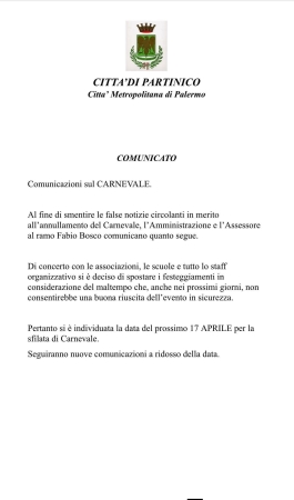 Coriandoli e maschere dovranno aspettare. A Partinico l’appuntamento è fissato per il 17 aprile. Con la speranza che, almeno allora, il sole sia dalla parte del Carnevale.