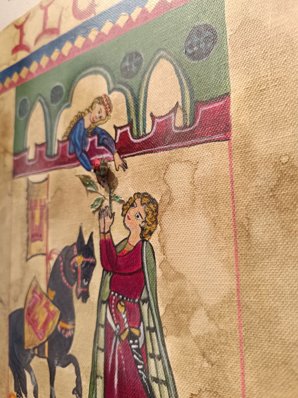 L’esposizione raccoglie le opere degli artisti ispirate al celebre componimento “Rosa fresca aulentissima”, tra i più noti della letteratura medievale italiana. In parallelo è stata presentata una nuova edizione del Contrasto, arricchita da un saggio del professore Baldo Carollo che ne ricostruisce la genesi e i riferimenti storici, offrendo una rilettura aggiornata del testo.