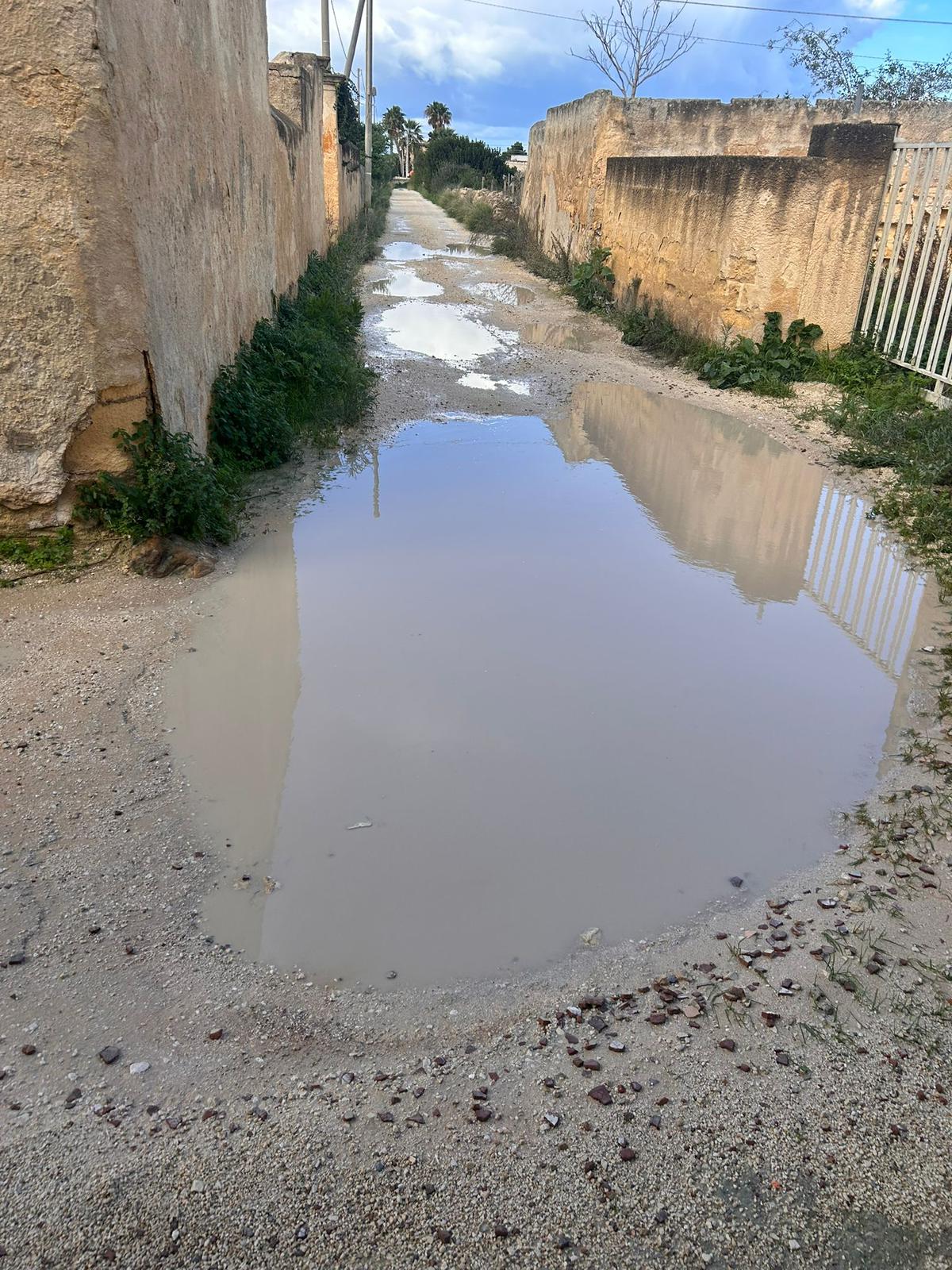 Se in città i rattoppi sono visibili, nelle contrade la situazione appare ancora più complessa. In contrada Pispisia, ad esempio, una stradella comunale attende il rifacimento del manto stradale da oltre trent’anni, secondo quanto raccontano i residenti.