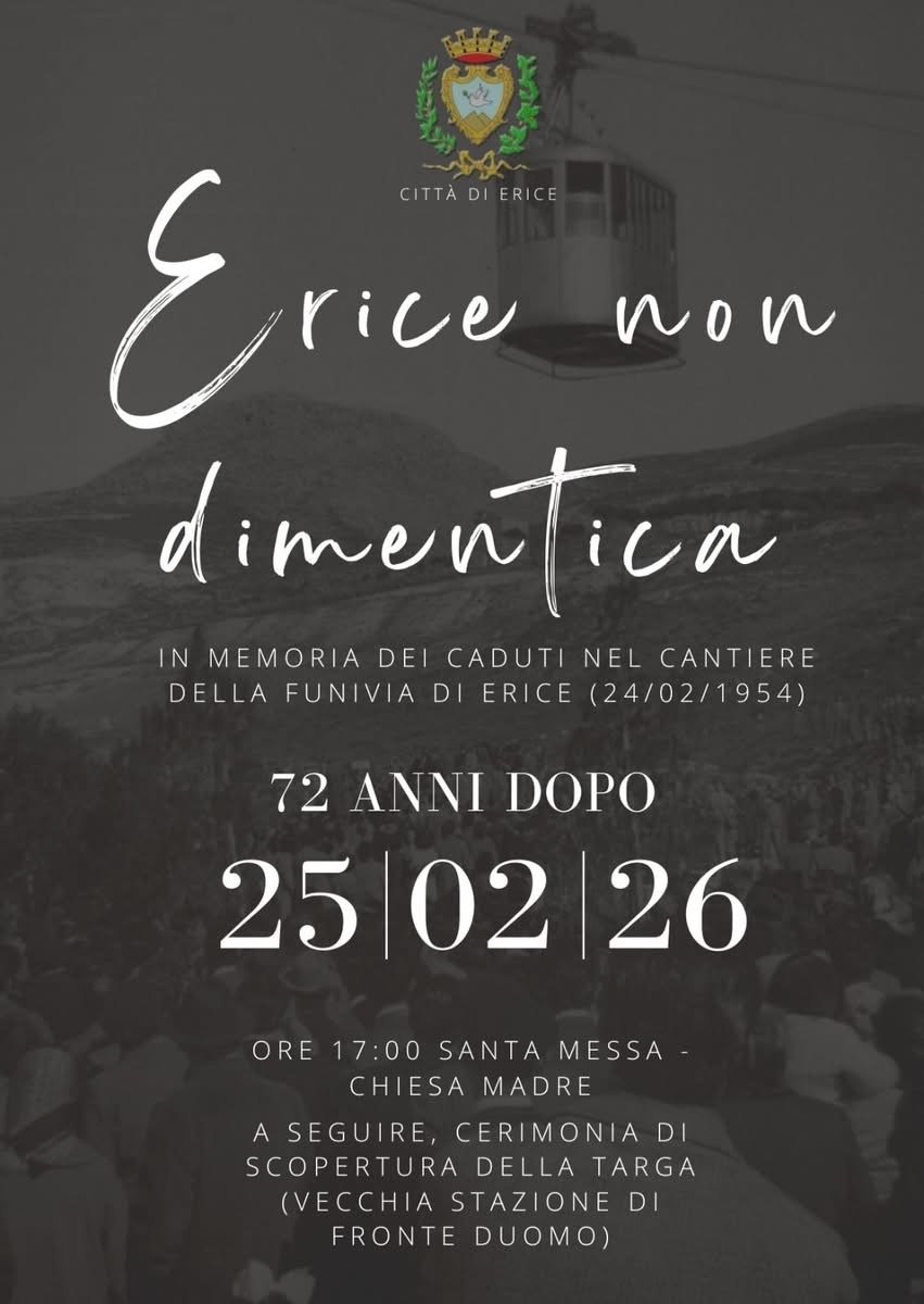 Nel pomeriggio di oggi, 25 febbraio 2026, la comunità di Erice si riunirà per ricordare le vittime nel 72° anniversario della tragedia.