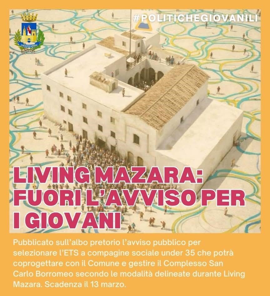 Un avviso pubblico per affidare il Complesso San Carlo Borromeo ai giovani under 35. È il nuovo passo del progetto “Living Mazara” a Mazara del Vallo, finanziato da ANCI e dal Dipartimento per le Politiche giovanili.