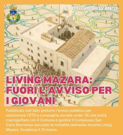 “È un momento centrale del progetto Living Mazara – ha dichiarato l’assessore alla Partecipazione e Politiche giovanili Gianfranco Casale –. È un atto amministrativo ma anche un atto di fiducia nelle nuove generazioni per ridare vita a un immobile pubblico e avviare una nuova economia sociale e di comunità”. Qui l'avviso pubblico.