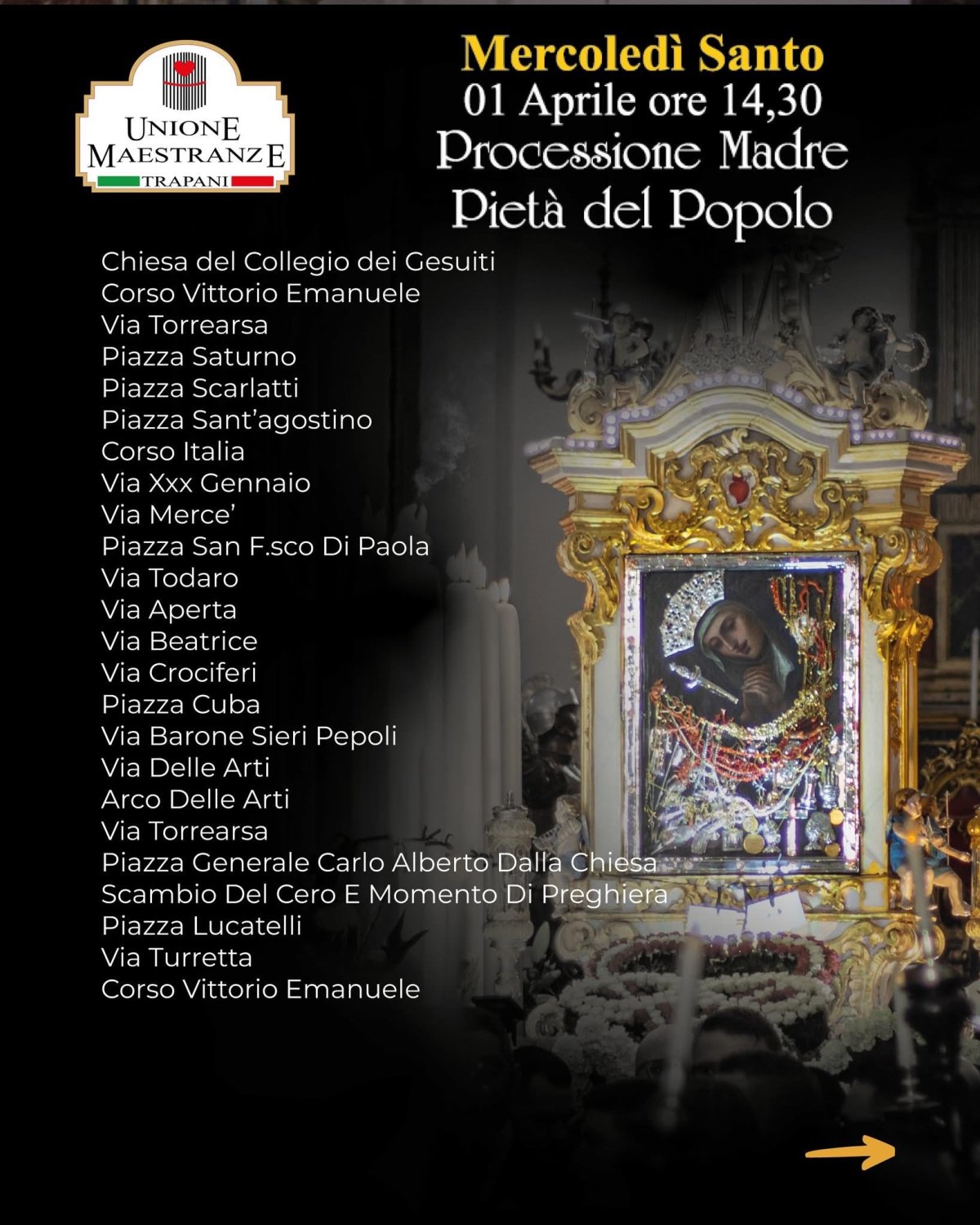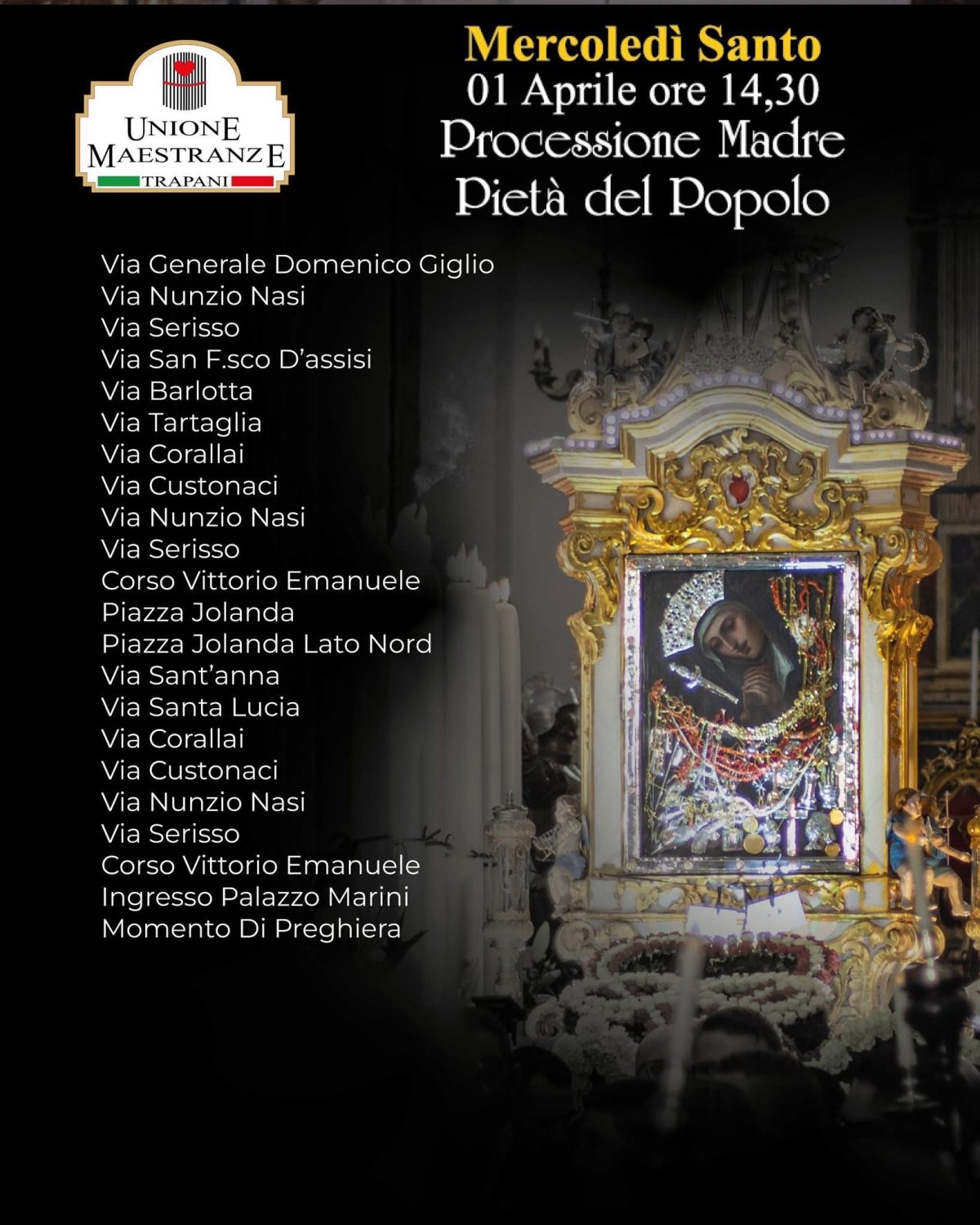 - Mercoledì Santo (1 aprile, ore 14.30): Madre Pietà del Popolo