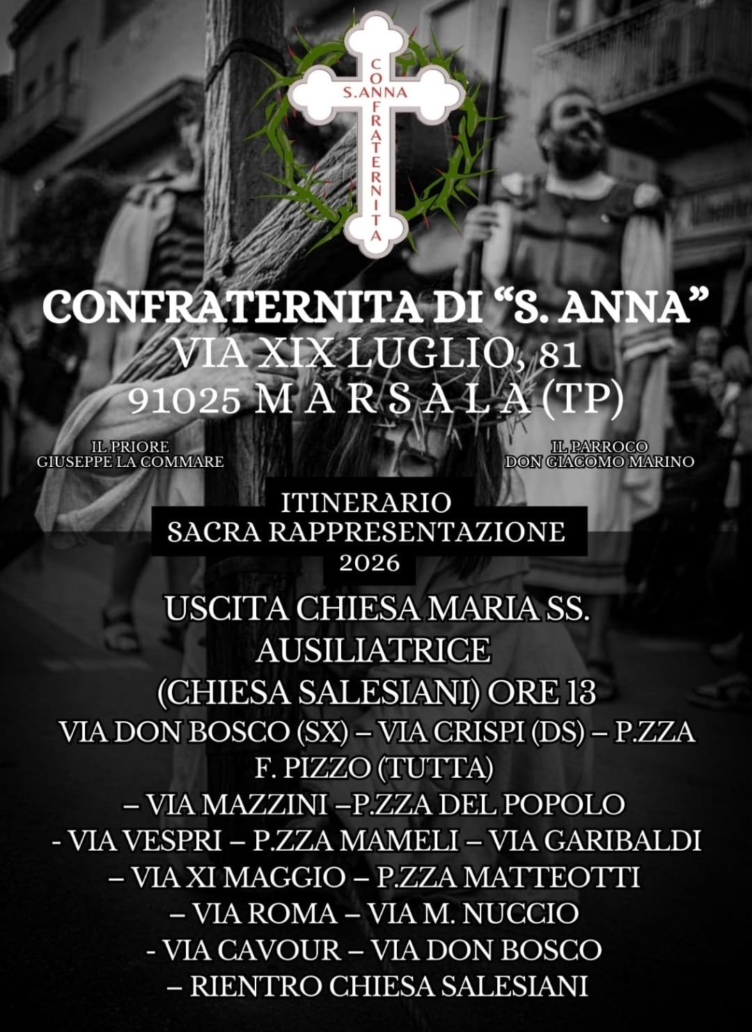 Per la prima volta nella sua storia secolare, la processione del Giovedì Santo a Marsala uscirà dalla chiesa Maria SS. Ausiliatrice, ai Salesiani.