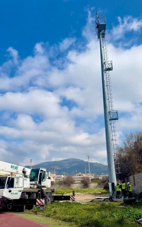 I piloni sono stati tirati su. Questa mattina al Campo Coni di Trapani sono stati alzati e fissati a terra i sostegni dell’impianto di illuminazione, passaggio decisivo per rendere finalmente fruibile la struttura anche nelle ore serali.
