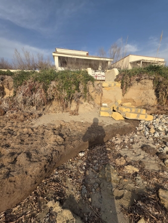 La violenza del mare ha eroso la battigia fino a cancellare un’ampia porzione di arenile. Dove prima c’era sabbia, oggi restano detriti, pietre e frammenti di muratura. Come si vede dalle foto allegate a questo articolo - inviate dalla nostra lettrice Deborah -, parte dei muri di cinta di alcune case sono stati letteralmente sgretolati dalle intemperie e sono crollati sulla spiaggia. Calcinacci e tufi si sono accumulati, rendendo l’area impraticabile.
