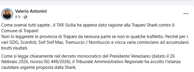 Andiamo all'altra vicenda. Valerio Antonini parla di prima vittoria al TAR sul caso Pala Daidone. Ma leggendo il decreto del Tribunale Amministrativo Regionale per la Sicilia, pubblicato il 26 febbraio 2026, la realtà è decisamente più sfumata.
