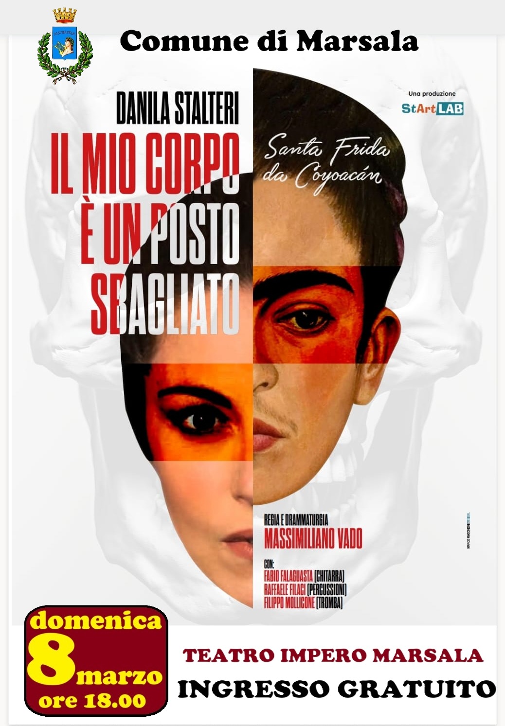 Marsala al Teatro Impero “Il mio corpo è un posto sbagliato” Due appuntamenti dedicati al tema dei diritti delle donne. È quanto organizza il Comune di Marsala nell'ambito della “Giornata Internazionale della Donna” che ricorre domani. Lo spettacolo “Il mio corpo è un posto sbagliato” - con ingresso gratuito - è in programma al Teatro Impero nelle giornate dell'8 marzo (per la cittadinanza, alle ore18:00) e di lunedì 9 marzo (matinèe per le scuole, ore 10:00).