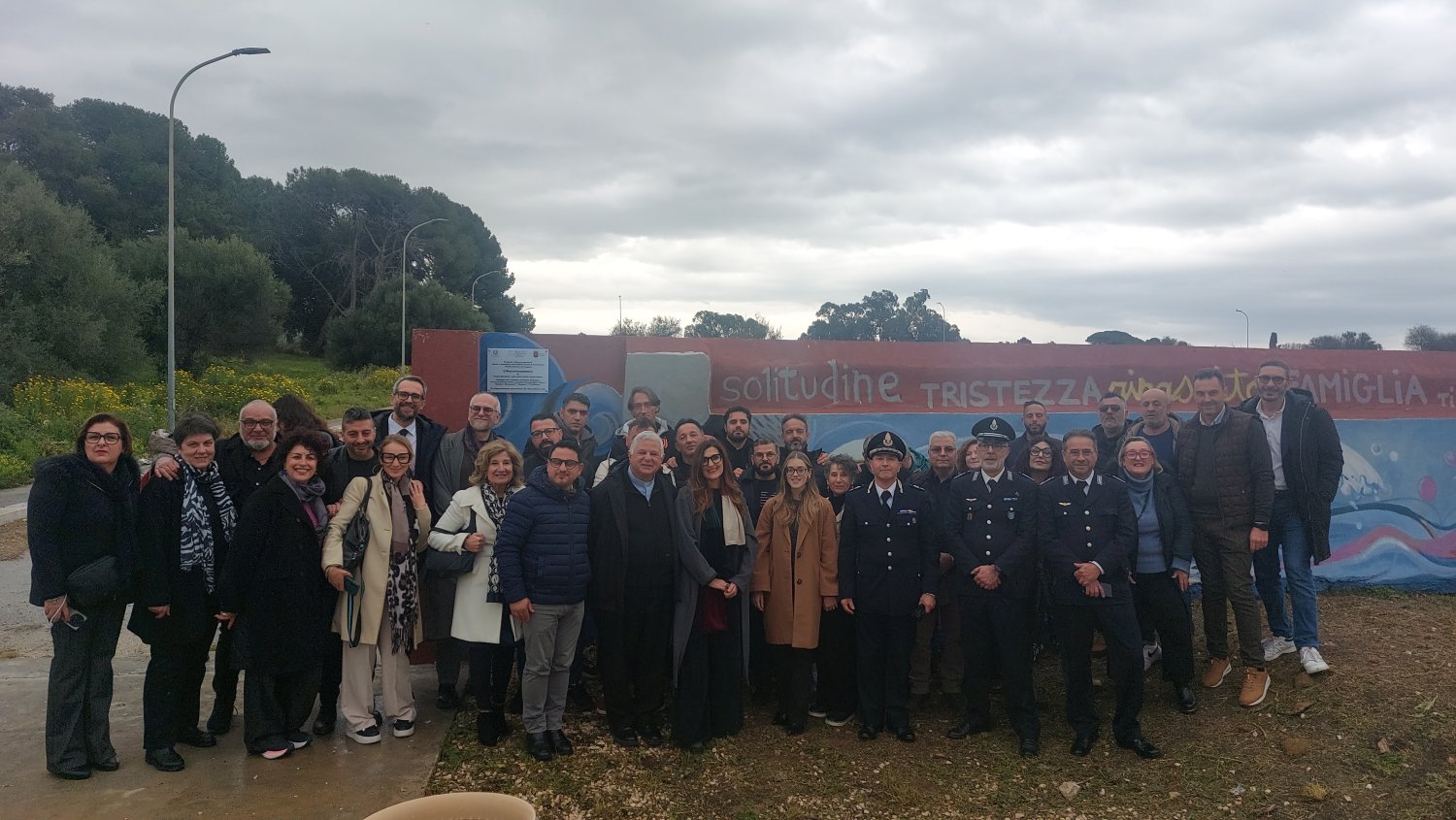 Alla cerimonia hanno partecipato magistrati, istituzioni, studenti e cittadini. Presente anche Pietro Grasso, ex Procuratore nazionale antimafia ed ex presidente del Senato; Daniela Lupo, prefetto di Trapani; Giuseppe Felice Peritore, questore di Trapani; Alessandra Camassa, presidente del Tribunale di Trapani; Rosanna Provenzano, direttrice ULEPE Trapani; Giacomo Tranchida sindaco di Trapani; Marilena Cricchio, coordinatrice Distretto socio-sanitario 50; Carla Rostagno, sorella di Mauro Rostagno; Simone Alecci, magistrato Tribunale di sorveglianza di Palermo; Vanni Quadrio, artista e arteterapeuta; Saverio Mazzara, psicologo. Presenti anche Gaetano Vivona, dipartimento Salute Mentale dell'Asp di Trapani e tutti gli autori del murale, persone in percorso di rieducazionee riparazione.