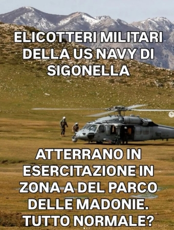 Elicotteri della US Navy partiti dalla base di Sigonella hanno sorvolato le Madonie arrivando ad atterrare a Piano Catarineci, in zona A del Parco, l’area più protetta della riserva naturale. Lo segnala la pagina Instagram di Piano Battaglia.